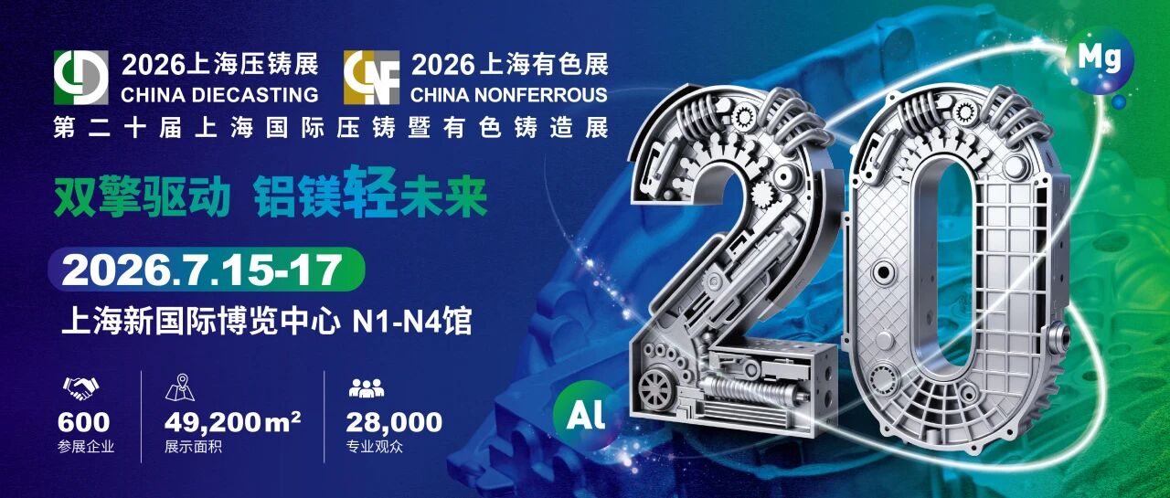 第二十屆上海國際壓鑄暨有色鑄造展將于2026年7月15-17日在上海新國際博覽中心(N1-N4館)隆重舉辦。