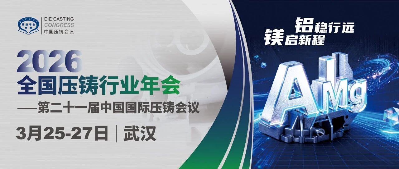 2026全國壓鑄年會即將于3月25-27日在武漢召開,會議以“鋁”穩行遠,“鎂”啟新程為主題。